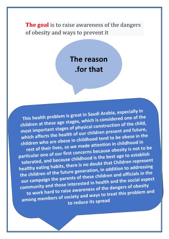 The goal is to raise awareness of the dangers of obesity and ways to prevent it The reason .for that