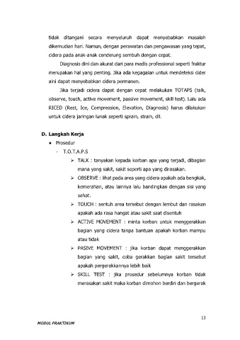 Jika terjadi cidera dapat dengan cepat melakukan TOTAPS (talk,