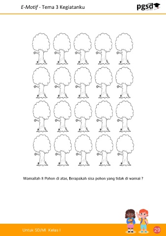 E-Motif - Tema 3 Kegiatanku W a r n a i l a h 8 P o h o n d i a t a s , B e r a p a k a h s i s a p o h o n y a n g t i d a k d i w a r n a i ? Untuk SD/MI Kelas I 29