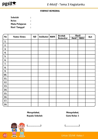 No     Nama Siswa        KD   Indikator KKM   Bentuk         Hasil      Ket