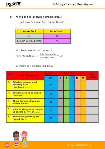 C.     Penilaian Soal Evaluasi Pembelajaran 3
