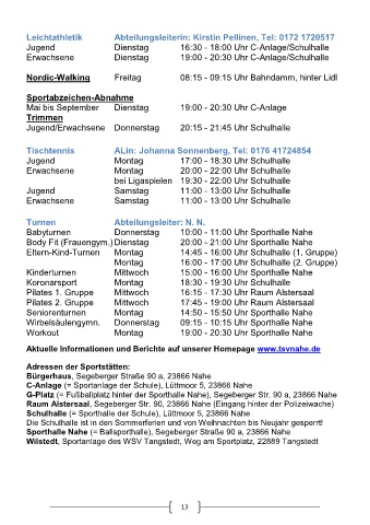 Leichtathletik Abteilungsleiterin: Kirstin Pellinen, Tel: 0172 1720517