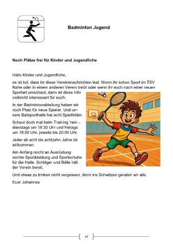 ihr ja Lust mitzumachen. Freitags und neuerdings auch mittwochs bei den Er- Badminton Jugend