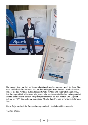 nach Malente, um ihre Auszeichnung entgegenzunehmen. Zum Auftakt der Ver- hat die Jugendfußballturniere, die jedes Jahr im Januar stattfinden, mit organisiert