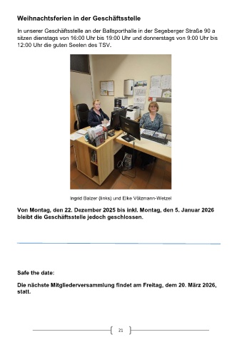 bleibt die Geschäftsstelle jedoch geschlossen.