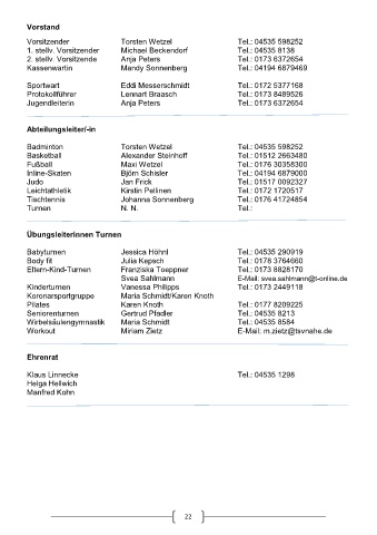 sitzen dienstags von 16:00 Uhr bis 19:00 Uhr und donnerstags von 9:00 Uhr bis 2. stellv. Vorsitzende Anja Peters Tel.: 0173 6372654