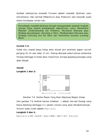 Persegi sehingga isi kotak akan maksimum, berapa panjang potongan yang