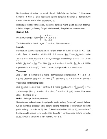 fungsi kontinu disetiap titik dalam selang tersebut. f dikatakan kontinu