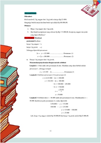 Jadi, harga 1 kg anggur adalah Rp 50.000,00 dan harga 1 kg jeruk adalah Rp 25.000,00.