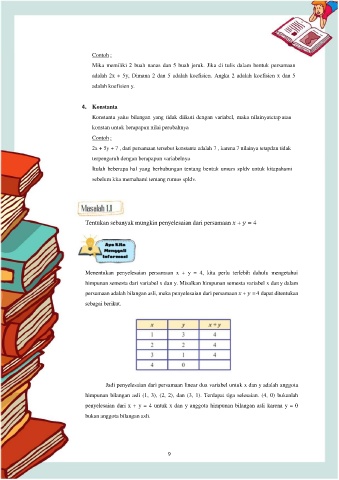 adalah 2x + 5y, Dimana 2 dan 5 adalah koefisien. Angka 2 adalah koefisien x dan 5