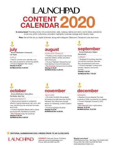 In every issue! Trending looks, hot products (hair, nails, makeup, lashes and skin), men’s styles, extensions know-how, photo collections, education highlights, business tutelage and industry news