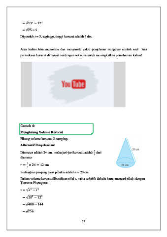 Dalam volume kerucut dibutuhkan nilai t, maka terlebih dahulu harus mencari nilai t dengan
