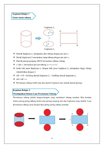 bahwa jaring-jaring tabung terdiri atas persegi panjang dan dua lingkaran yang identik. Luas