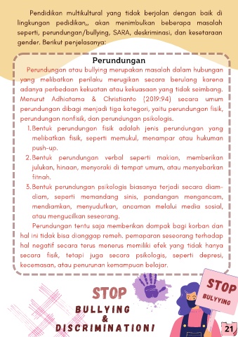 seperti, perundungan/bullying, SARA, deskriminasi, dan kesetaraan