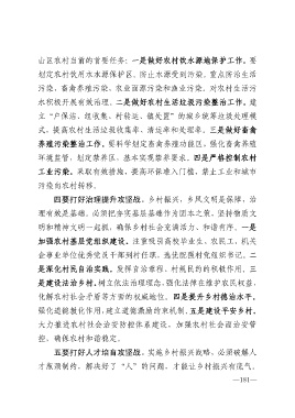 山区农村当前的首要任务:一是做好农村饮水源地保护工作。要