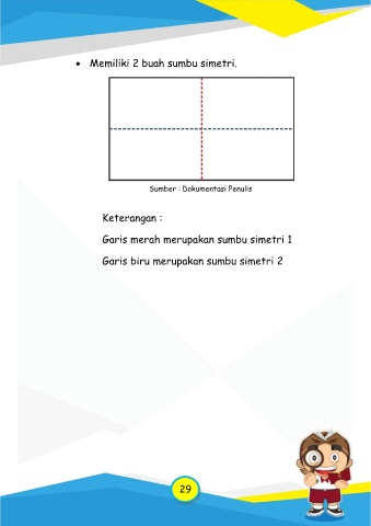Memiliki 2 buah sumbu simetri. Sumber : Dokumentasi Penulis Keterangan : Garis merah merupakan sumbu simetri 1 Garis biru merupakan sumbu simetri 2 29