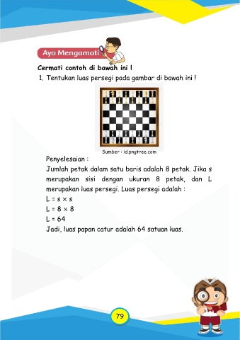 Jadi, luas papan catur adalah 64 satuan luas.