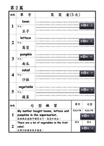 我媽媽在超級市場買豆子、萵苣和南瓜。