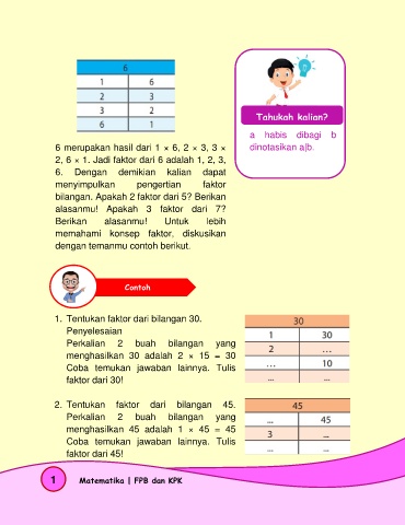 2, 6 × 1. Jadi faktor dari 6 adalah 1, 2, 3,