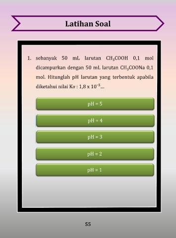 1. sebanyak 50 mL larutan CH COOH 0,1 mol