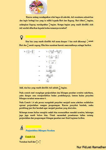 Jadi, sisa kue yang masih dimiliki Adi adalah bagian.