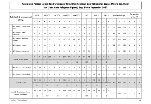6 IBTE Kampus Sultan Bolkiah 55 20 9 4 0 0 46 16 0 0 0 0 0 0 0 0 110 40 150 2 0 2