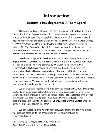 Tactics for the Van Buren Chamber of Commerce and its community partners to