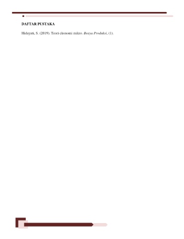 DAFTAR PUSTAKA Hidayati, S. (2019). Teori ekonomi mikro. Beaya Produksi, (1).