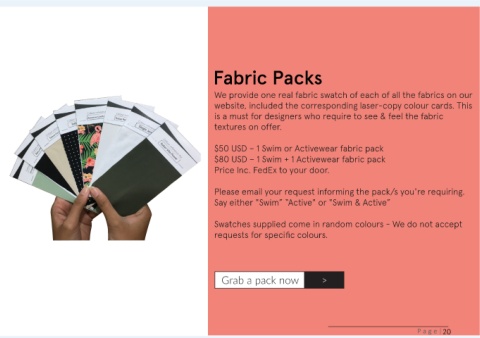 $80 USD – 1 Swim + 1 Activewear fabric pack
