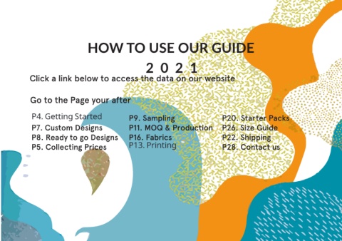 P7. Custom Designs P11. MOQ & Production P26. Size Guide