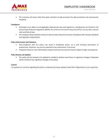 • The Company will ensure that third-party contracts include provisions for data protection and cybersecurity
