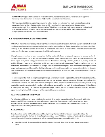 6.2 PERSONAL CONDUCT AND APPEARANCE