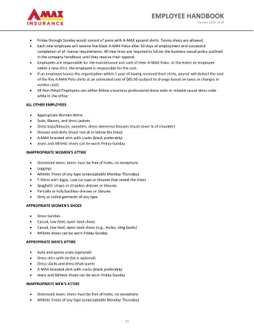• Friday through Sunday would consist of jeans with A-MAX apparel shirts. Tennis shoes are allowed.