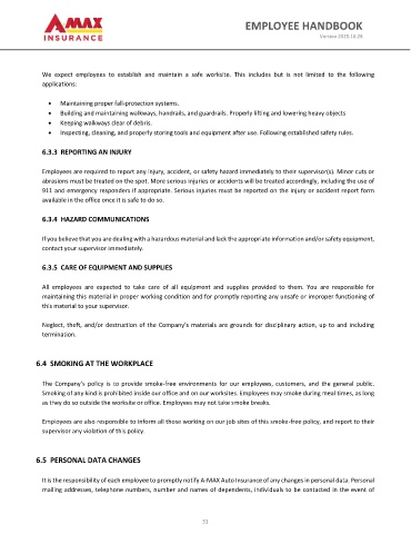 It is the responsibility of each employee to promptly notify A-MAX Auto Insurance of any changes in personal data. Personal