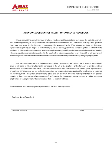 I have received the current Company employee handbook and have read and understand the material covered. I