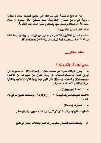 أوراق العمل ( ،)Worksheetsكل ورقة تتكون من مجموعة من الأعمدة