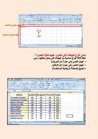 ‫ماهى أنواع البيانات التى تحتوى عليها خلايا الجدول ؟‬