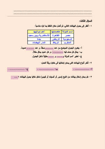 -1أنظر إلى جدول البيانات التالي ،ثم أكمل مكان النقط بما ت اره مناسباً: