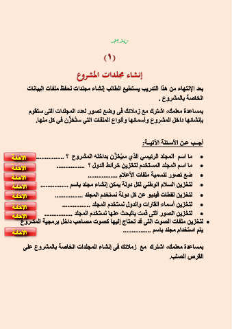 بمساعدة معلمك ،اشترك مع زملائك فى إنشاء المجلدات الخاصة بالمشروع على