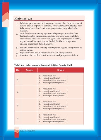 Tabel 4.3 Keberagaman Agama di Sekitar Peserta Didik