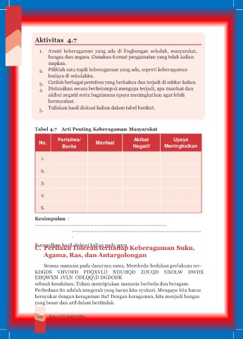 Tabel 4.7 Arti Penting Keberagaman Masyarakat