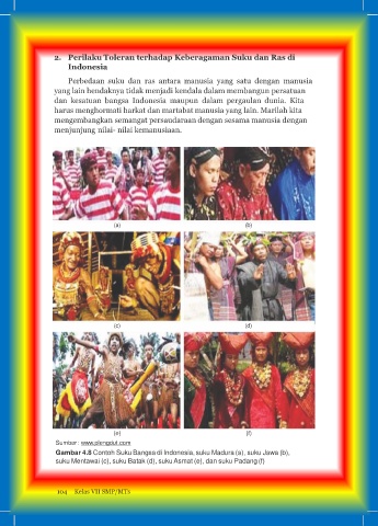 suku Mentawai (c), suku Batak (d), suku Asmat (e), dan suku Padang (f)