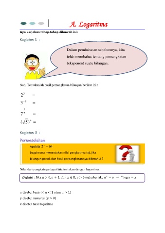 bilangan pokok dan hasil perpangkatannya diketahui ?