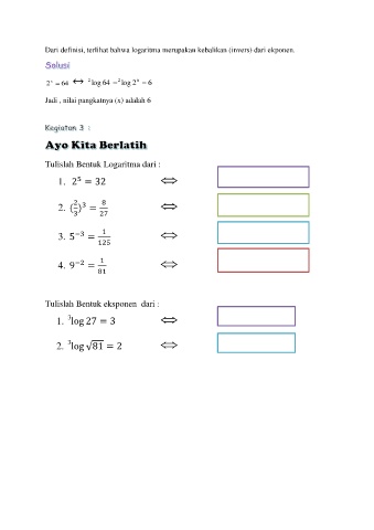 Dari definisi, terlihat bahwa logaritma merupakan kebalikan (invers) dari ekponen.