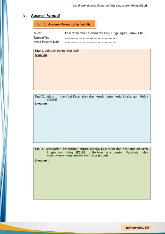 Materi : Kesehatan dan Keselamatan Kerja Lingkungan Hidup (K3LH)