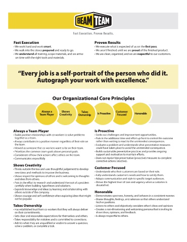 • We work hard and work smart. • We execute what is expected of us on the rst pass.