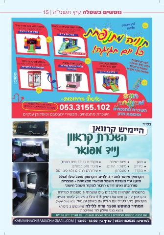 לפרטים | 0534182535 :עדיף בין KARAVANACHISAMACH@GMAIL.COM | 13:00-16:00