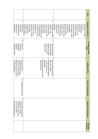 SKL Kompetensi Inti (KI) Indikator (IPK) Materi Pemebelajaran Kegiatan Pembelajaran