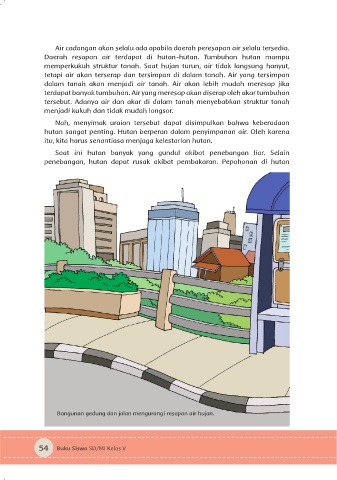 Bangunan gedung dan jalan mengurangi resapan air hujan.