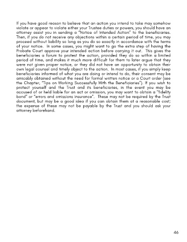 violate or appear to violate either your Trustee duties or powers, you should have an